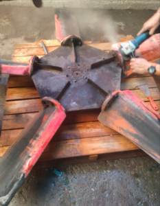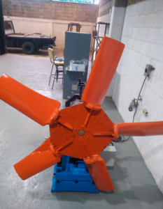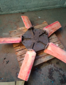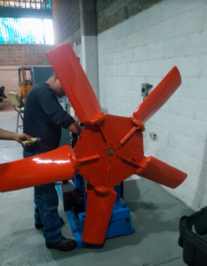 Se realizo mantenimiento preventivo al conjunto Motor / Ventilador de la torre de enfriamiento de una industria cervecera. Luego de desarmado el equipo procedimos a retirar el exceso de sedimento en las hélices del ventilador, luego se procedió a colocar pintura epóxica para comenzar el balanceo dinámico. El motor fue intervenido con un recubrimiento de resina para embobinado y posterior horneado, cambio de rodamientos y balanceo dinámico. Se ensambló el ventilador y el rotor y nuevamente se realizo el balanceo dinámico quedando dentro de las tolerancias permitidas por la norma.